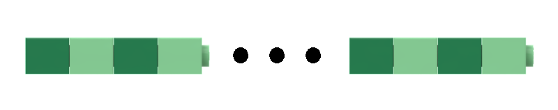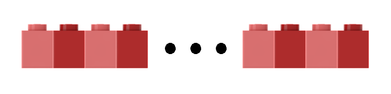 Una fila de X bricks 1×1 colocados en pie –en vertical–, alineados → cada uno cubre 8 mm de distancia horizontal (el largo del brick).
